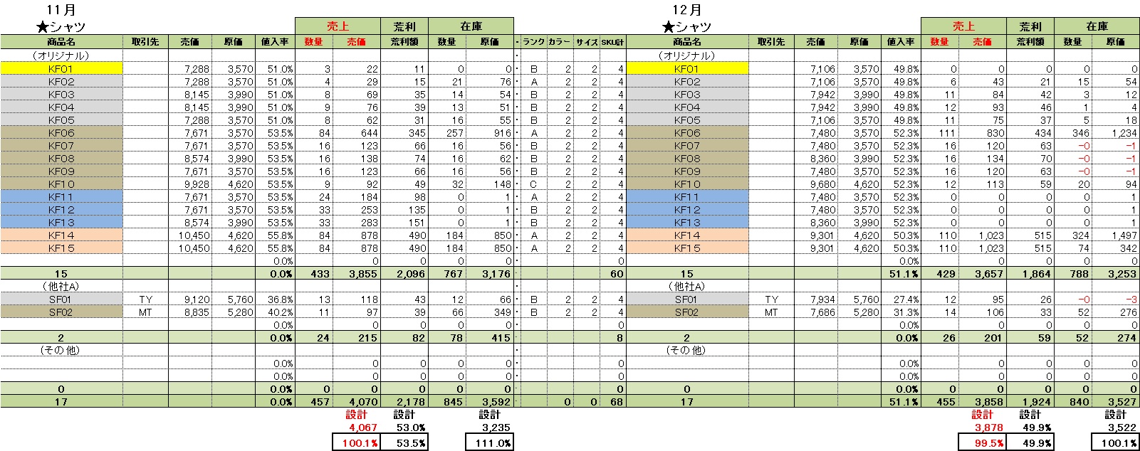 ・先月(先週)までの売上・粗利・仕入・在庫実績