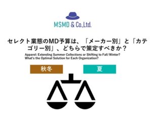 ★セレクト業態こそ「MD予算策定」を重視すべき リードタイム(以下LT)の短縮が困難なアパレル小売業において、当サイトではこれまで、MD予算策定の重要性を繰り返しお伝えしてきました。 MDの成否は予算 … 続きを読む セレクト業態のMD予算は、「メーカー別」と「カテゴリー別」、どちらで策定すべきか?