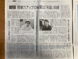 6月27日の繊研新聞さんの紙面で、(株)BEAMS渡部CE本部長と弊社代表 佐藤正臣の対談記事が掲載されております。 テーマは、コロナ後の実店舗のあり方について考える!といった内容となっております。興 … 続きを読む 6月27日の繊研新聞紙面にて、(株)BEAMS 渡部CE本部長と弊社代表 佐藤正臣の対談記事が掲載されました